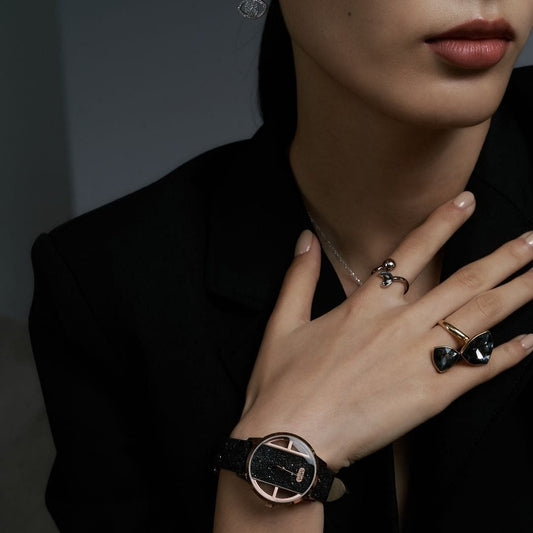 Saga Watches Crystal Fabric Black 34.5 MM Ronda Swiss
