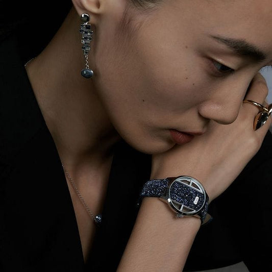 Saga Watches Crystal Fabric Blue 34.5 MM Ronda Swiss Women