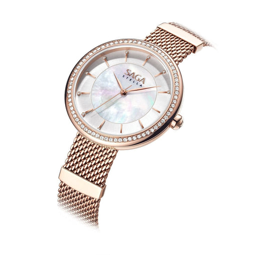 Saga Watches Crystal Steel Signature Collection 35 MM Ronda Swiss Women