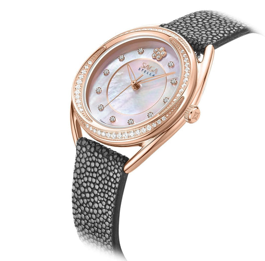 Saga Watches Stingray Strap Rose Gold 35 MM Ronda Swiss Women