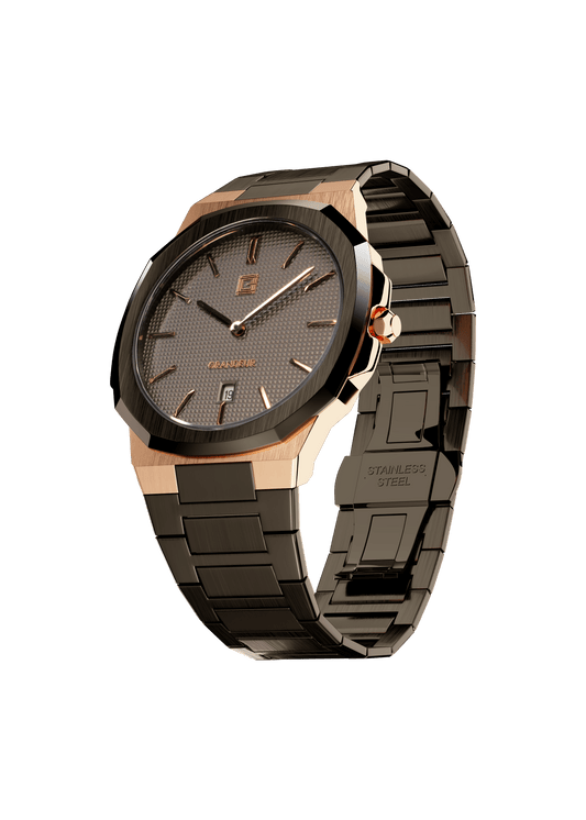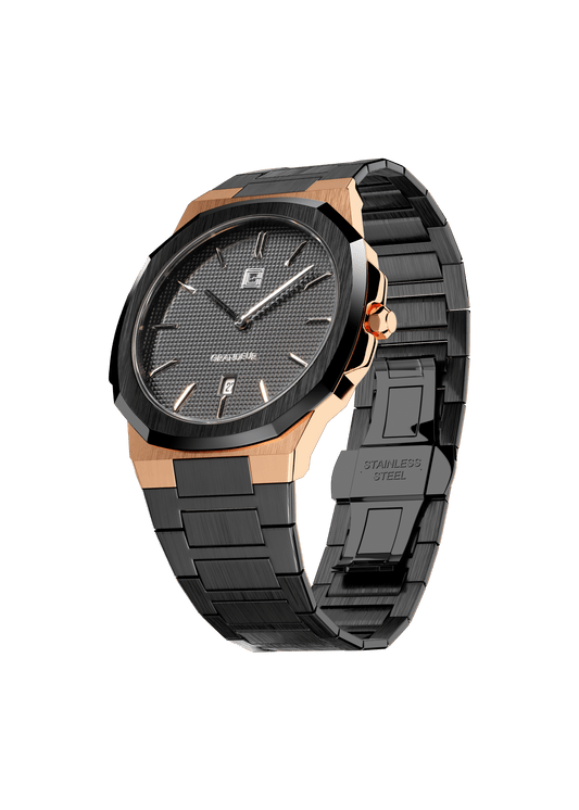 Grandeur Ultra Thin Stain Steel Rose Gold/Black 40 MM Quartz Men