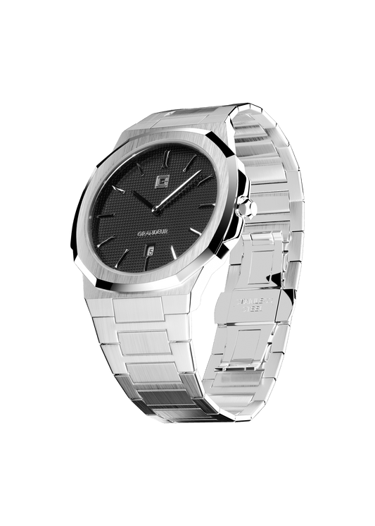 Grandeur Ultra Thin Stain Steel Black 40 MM Quartz Men