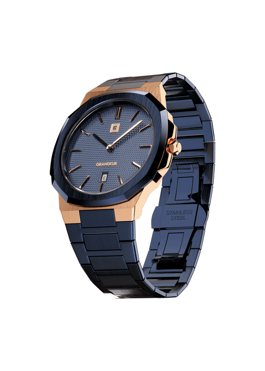 Grandeur Ultra Thin Stain Steel Rose Gold/Blue 40 MM Quartz Men