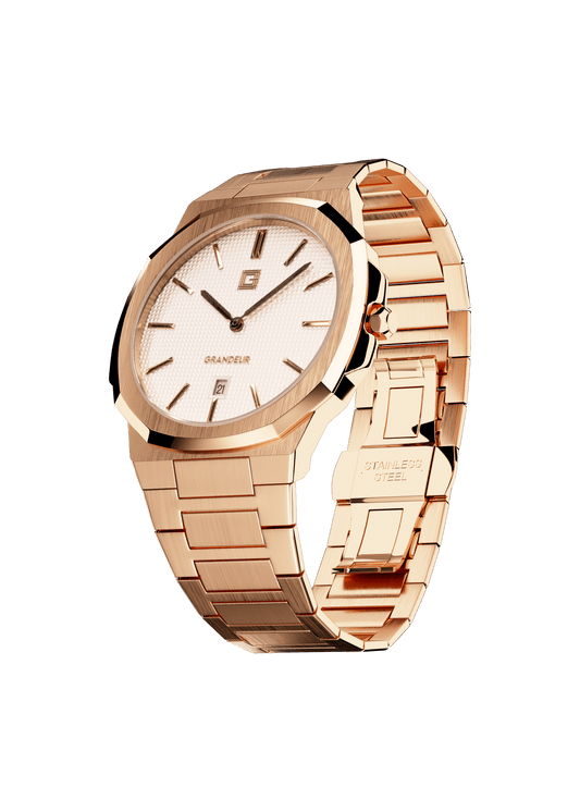 Grandeur Ultra Thin Stain Steel Rose Gold/ Grey 40 MM Quartz Men