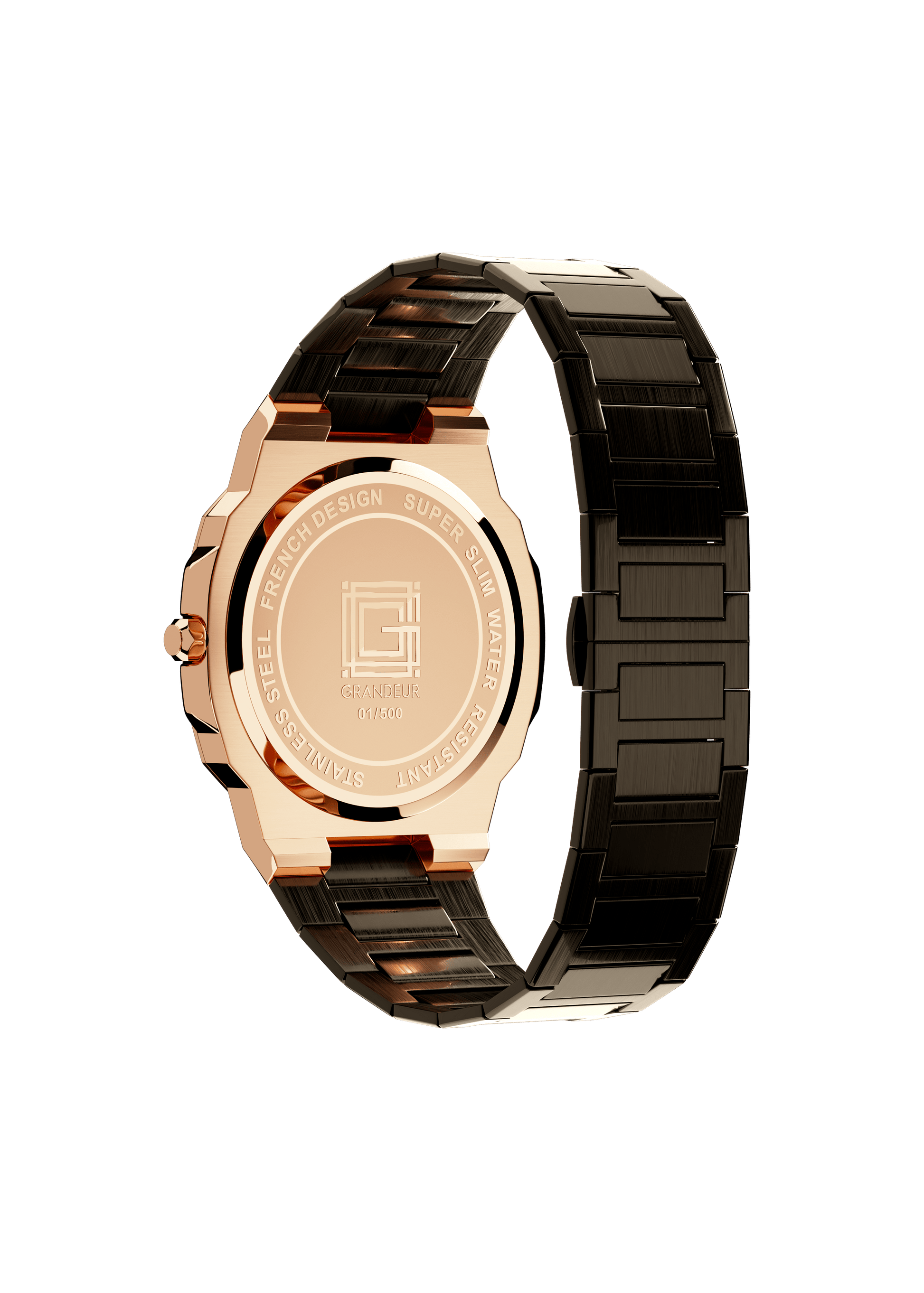 Grandeur Ultra Thin Stain Steel Rose Gold/ Grey 40 MM Quartz Men