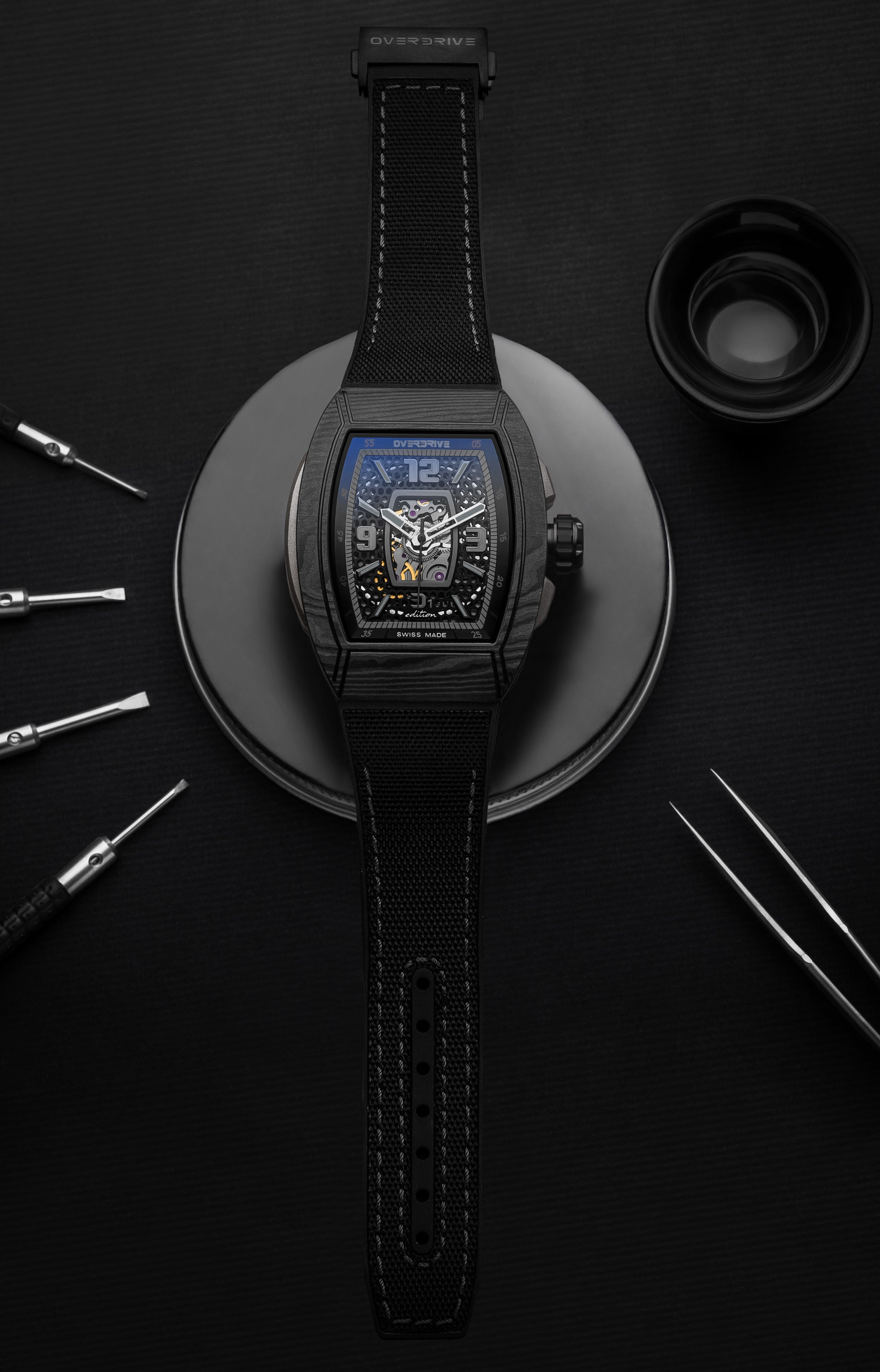 Midnight Black Velocity – Overdrive Skeleton Automatic Watch | Titanium & Forged Carbon