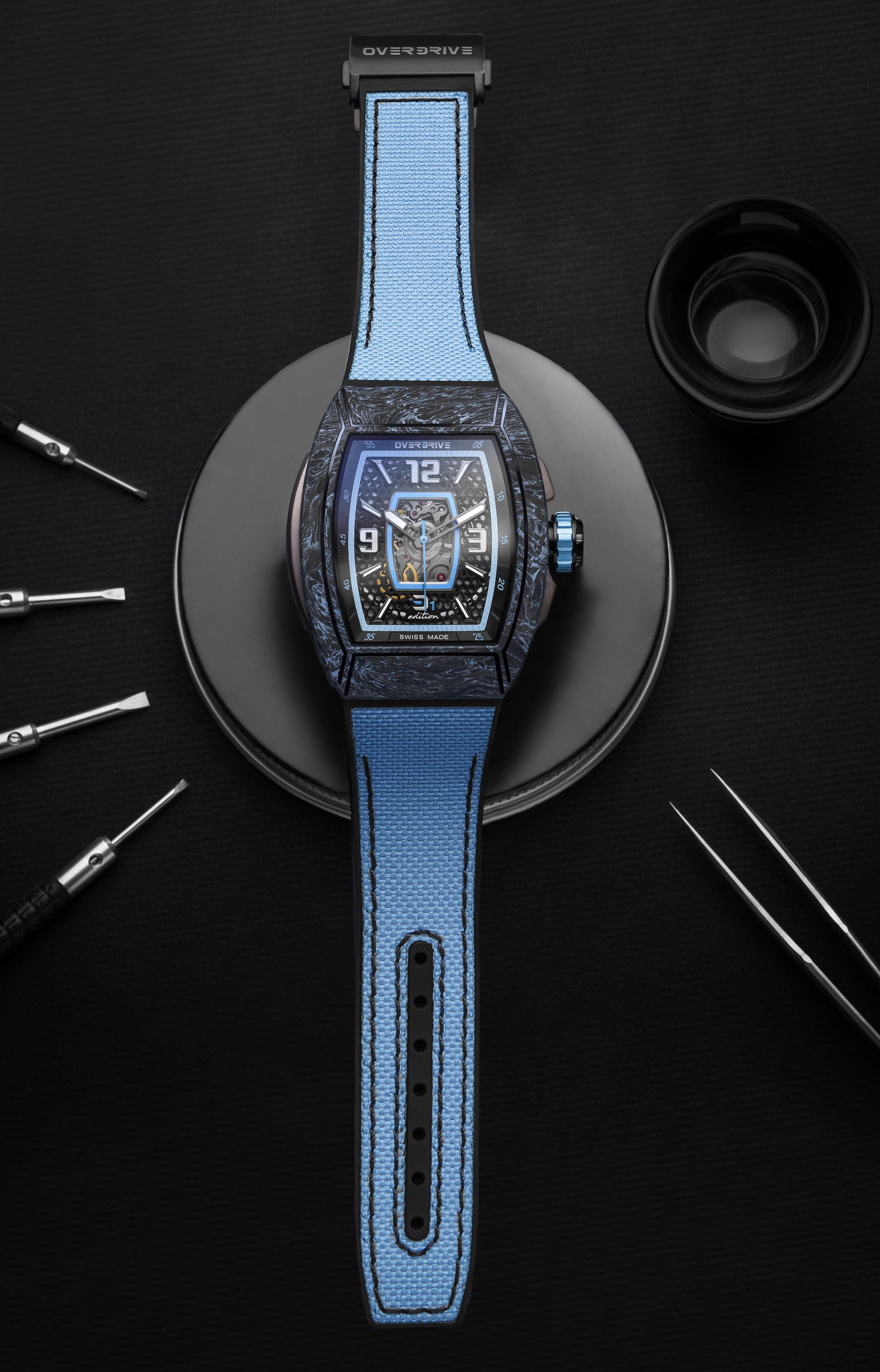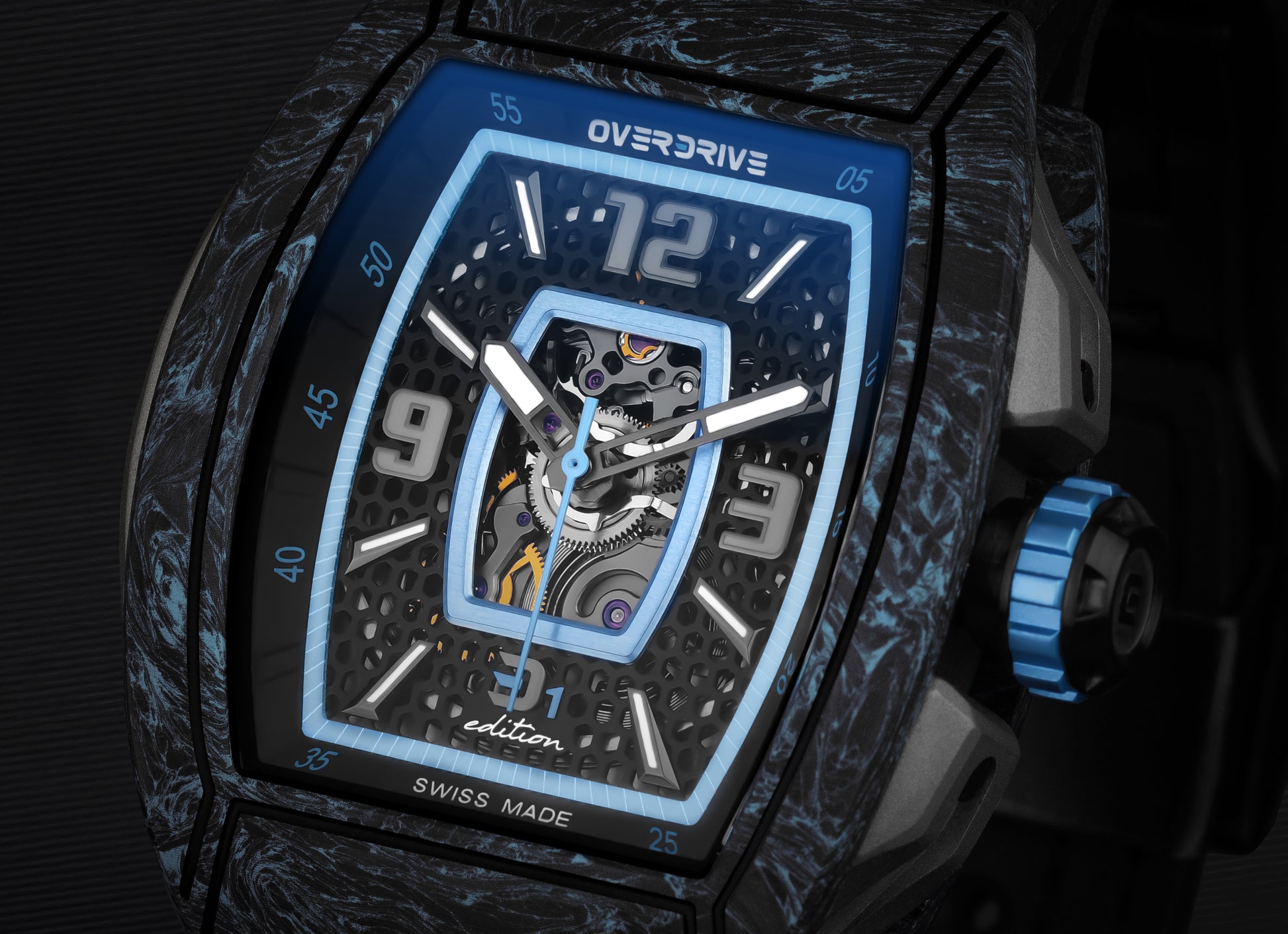 Ozone Blue Velocity – Overdrive Skeleton Automatic Watch | Titanium & Forged Carbon