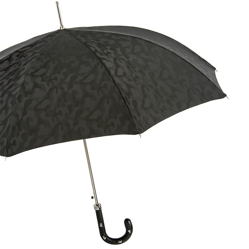 PASOTTI Black Camouflage Umbrella, Leather Handle with Skulls