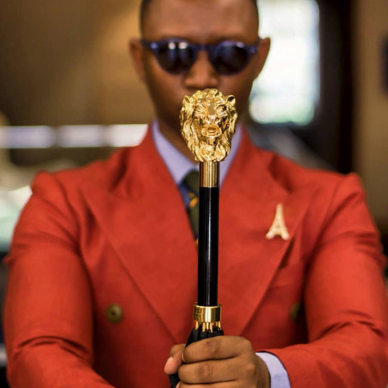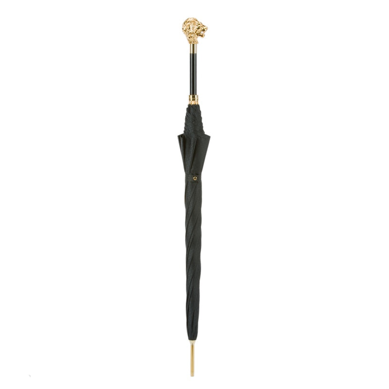 Black Umbrella with Gold Lion Handle