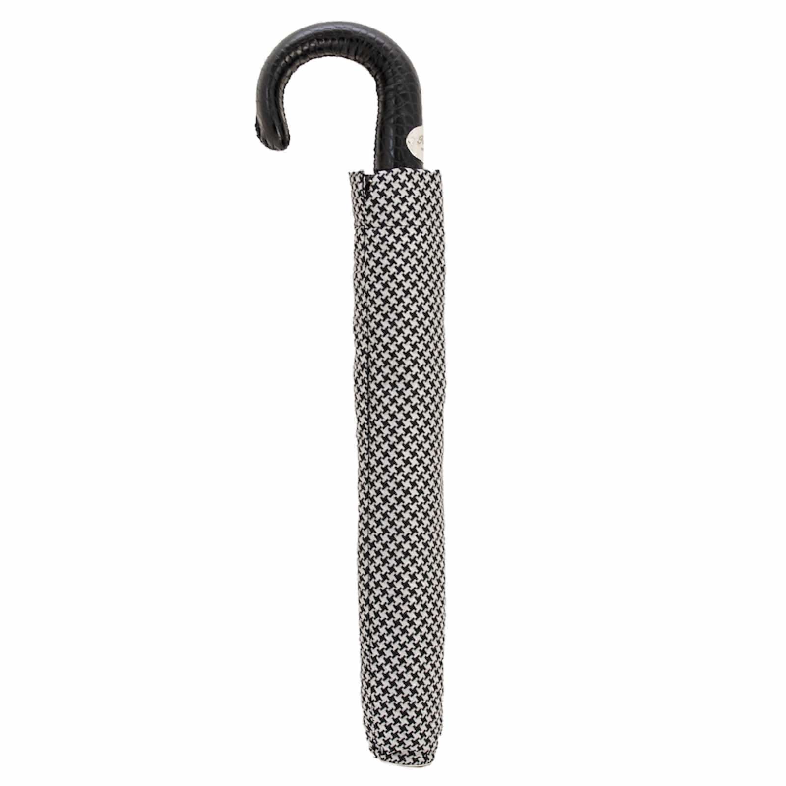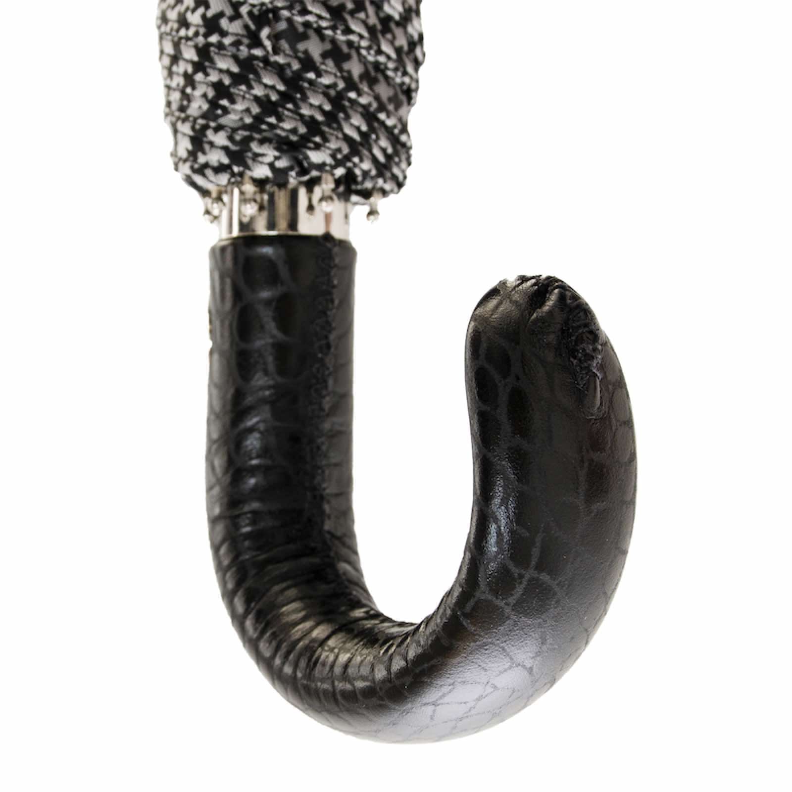 PASOTTI Pied de Poule Folding Umbrella with Leather Handle