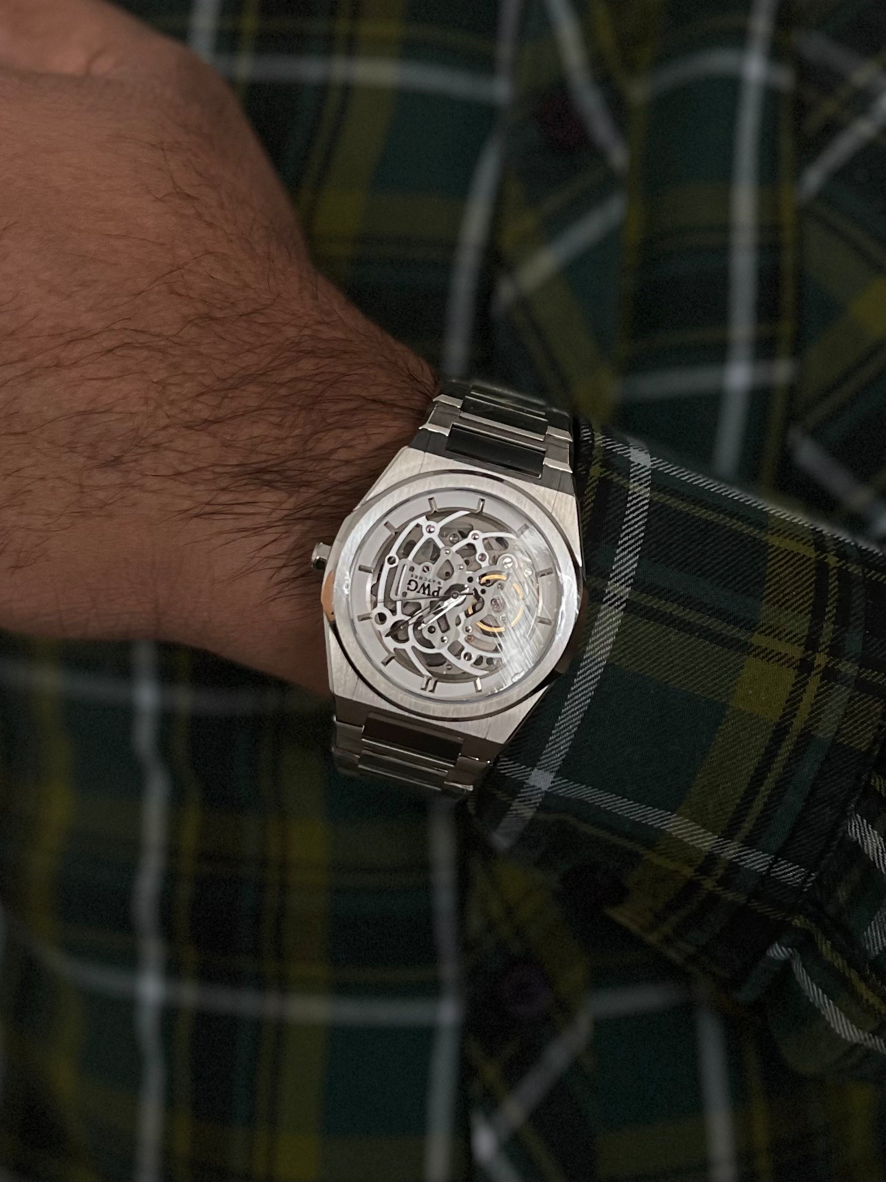 PWG Skeleton Stainless Steel Silver 42 MM Automatic Men