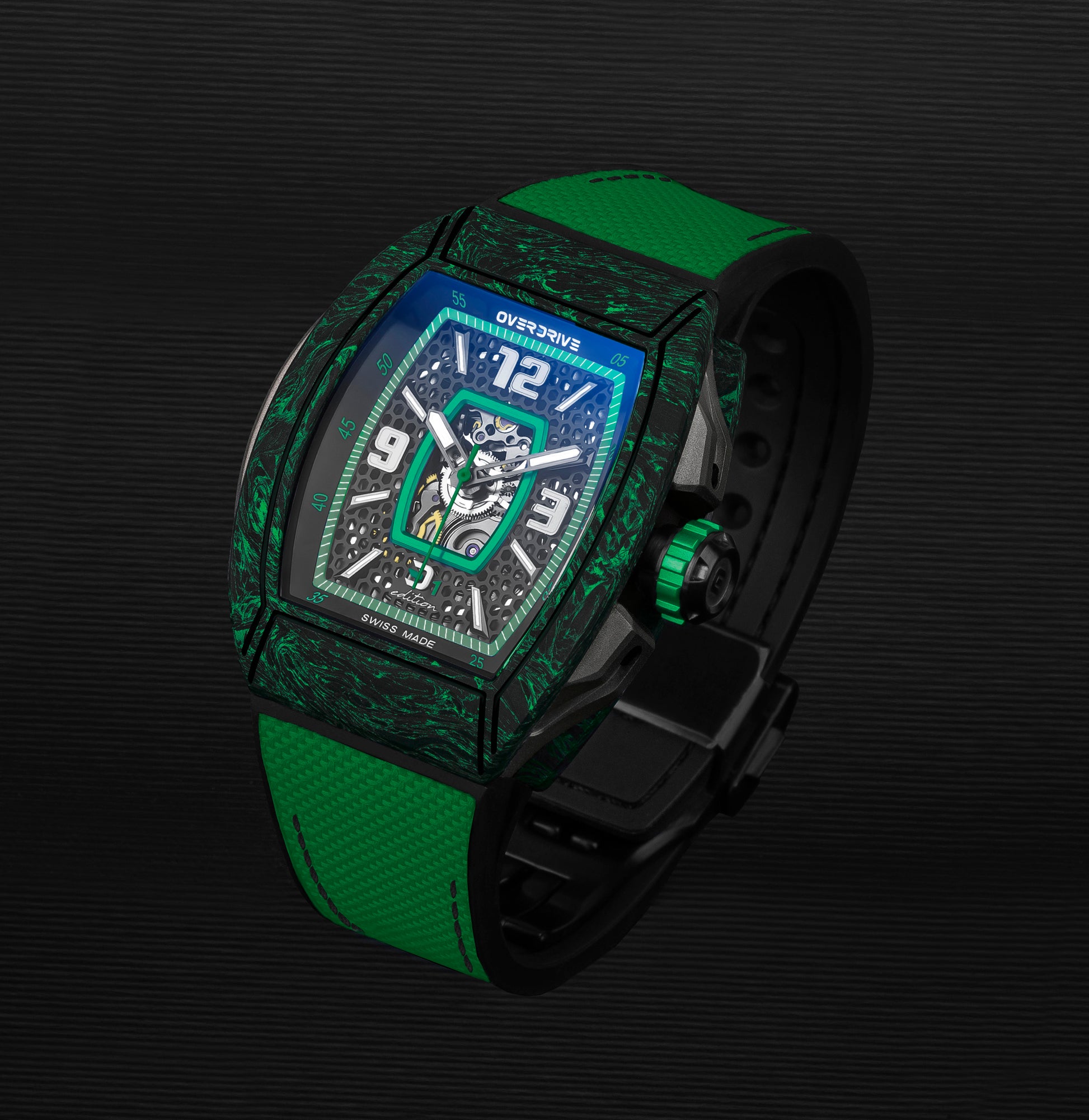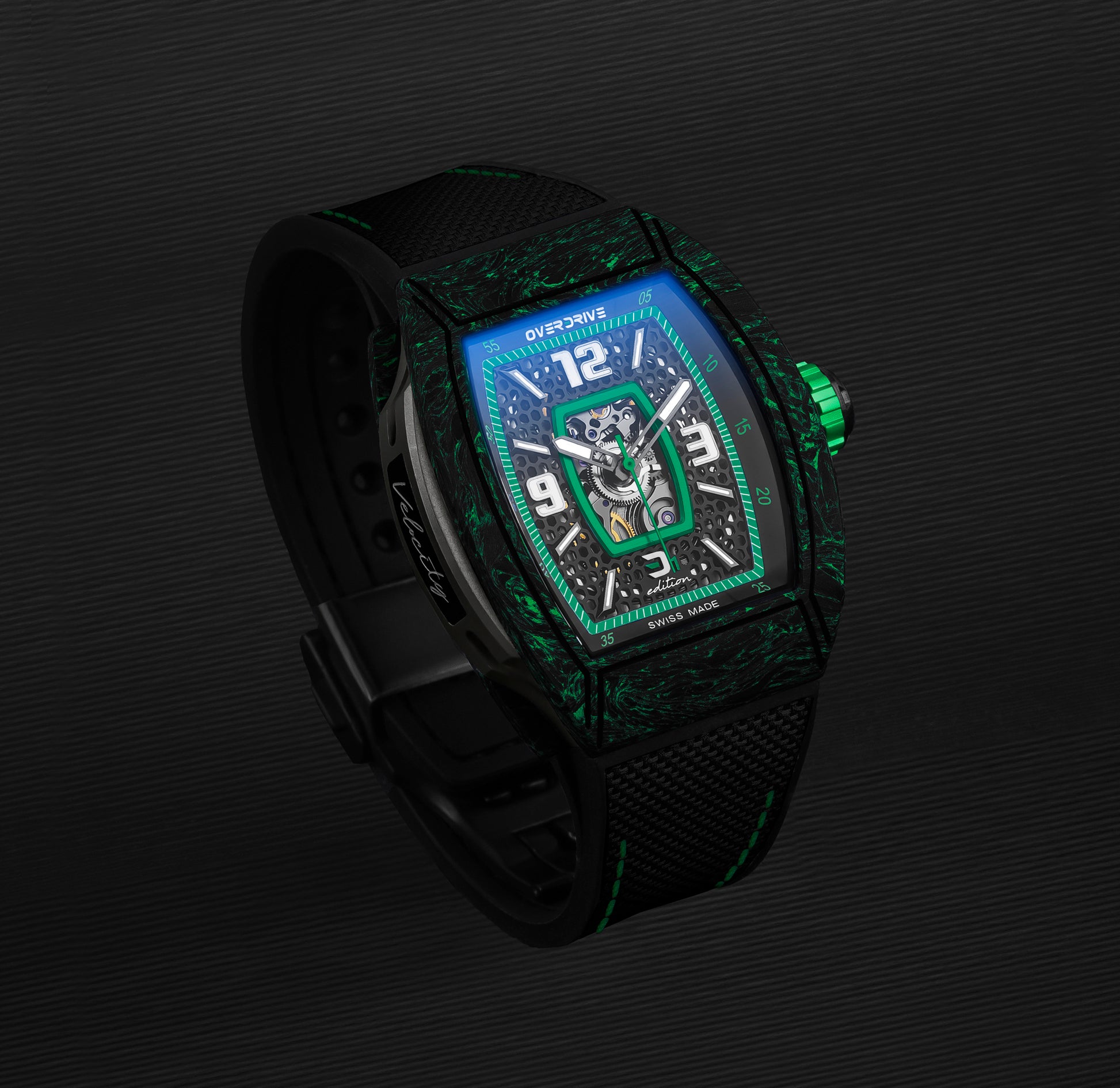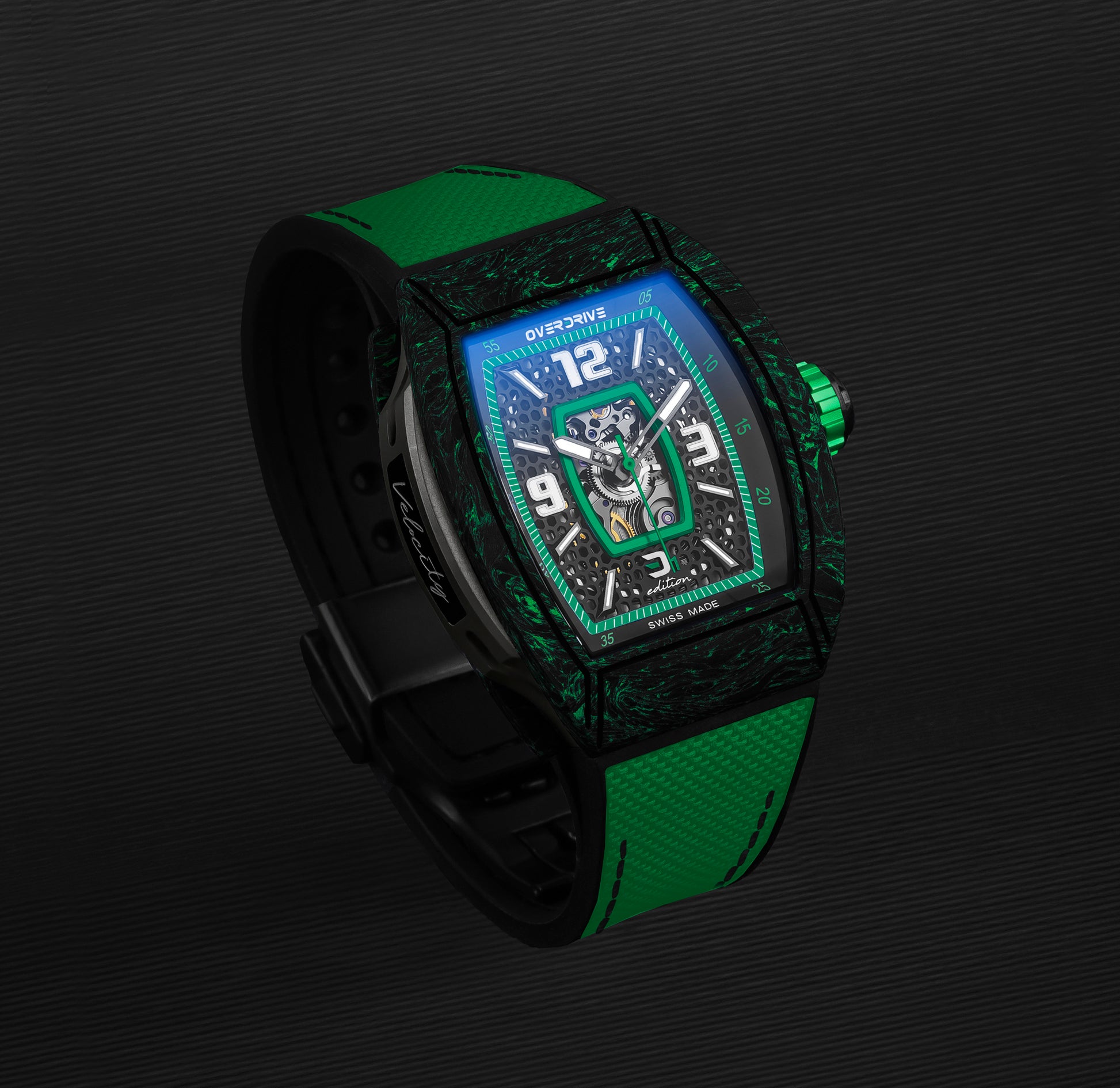The Racing Green Velocity by Overdrive is a tribute to speed, precision, and craftsmanship. Inspired by racing heritage and built with cutting-edge materials, this timepiece is engineered for those who never settle.