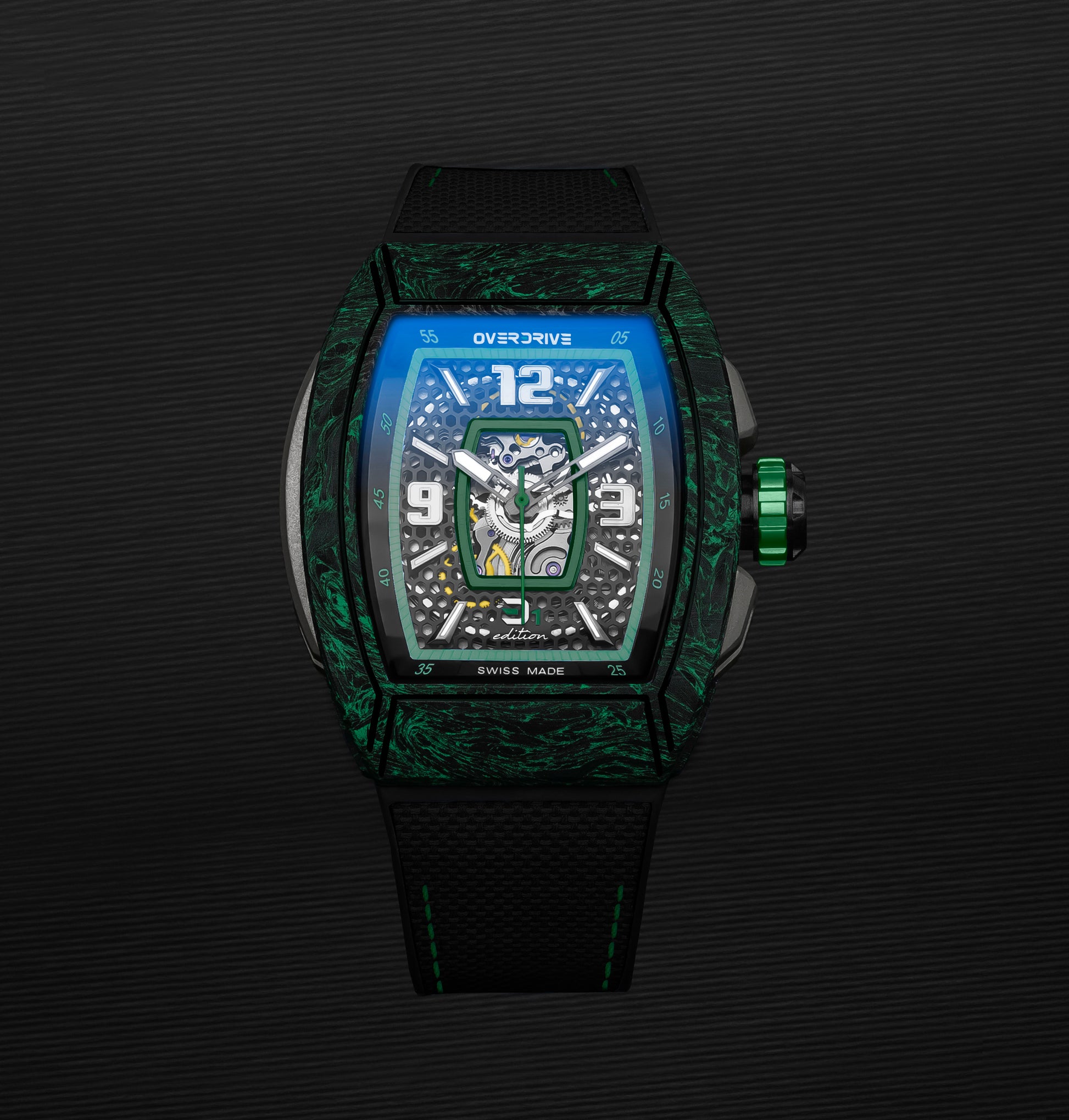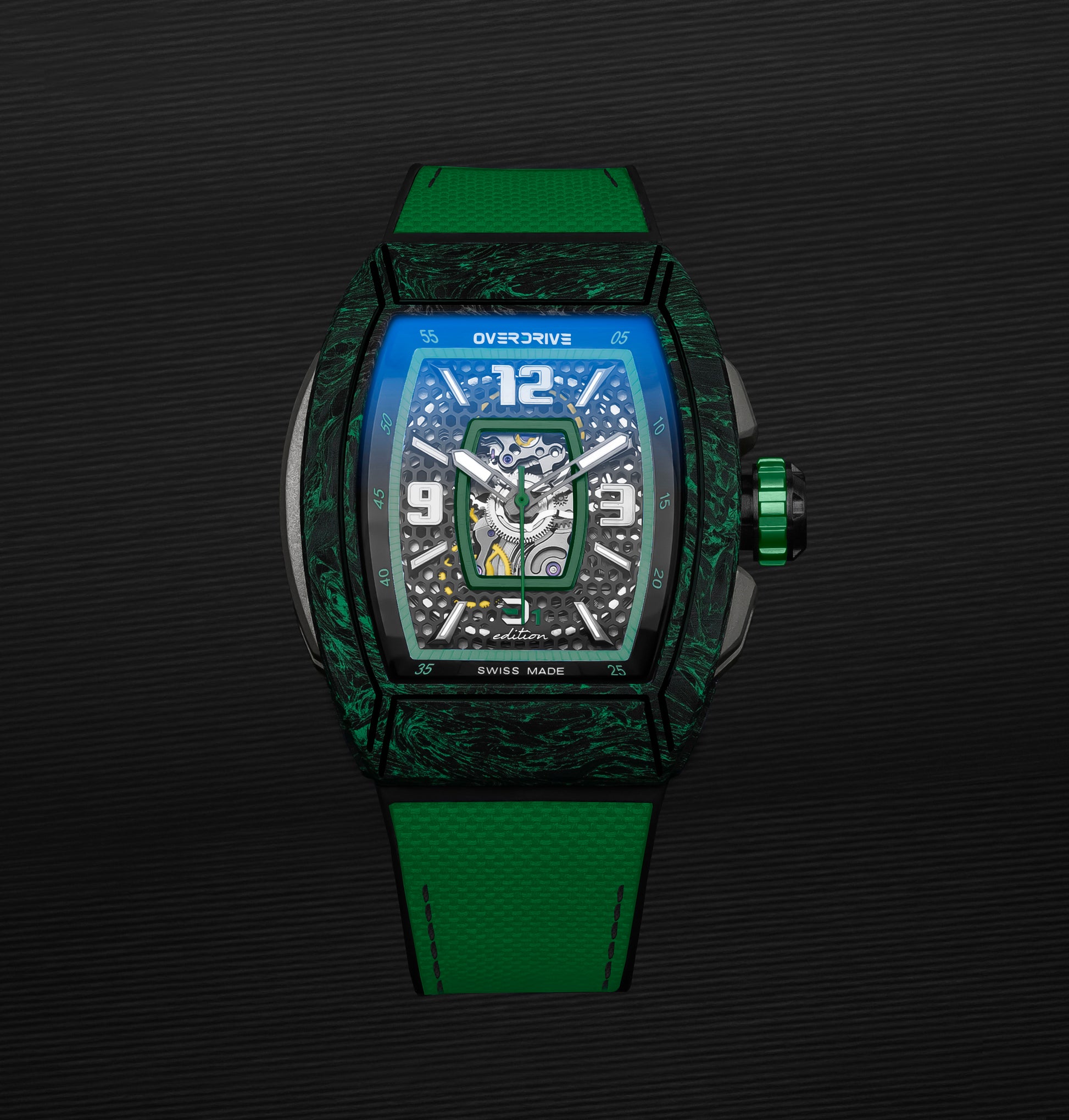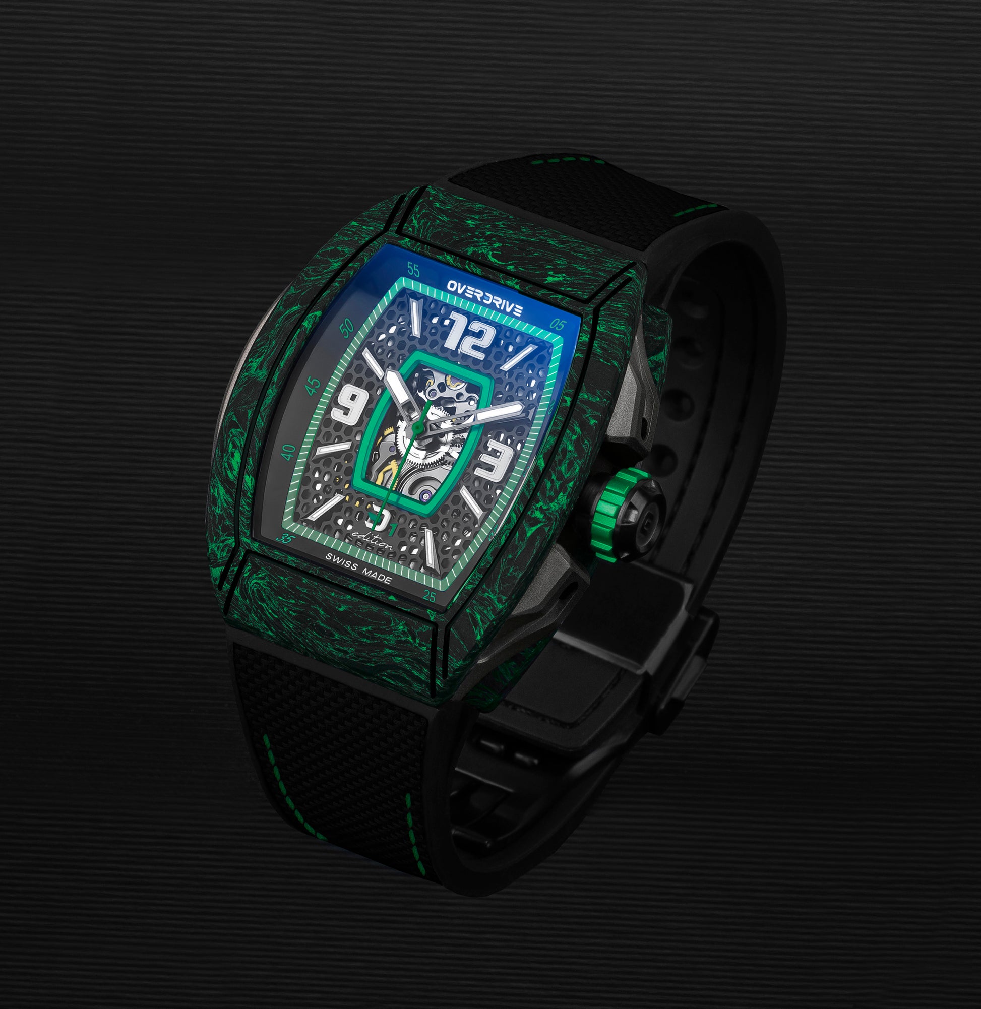 The Racing Green Velocity by Overdrive is a tribute to speed, precision, and craftsmanship. Inspired by racing heritage and built with cutting-edge materials, this timepiece is engineered for those who never settle.