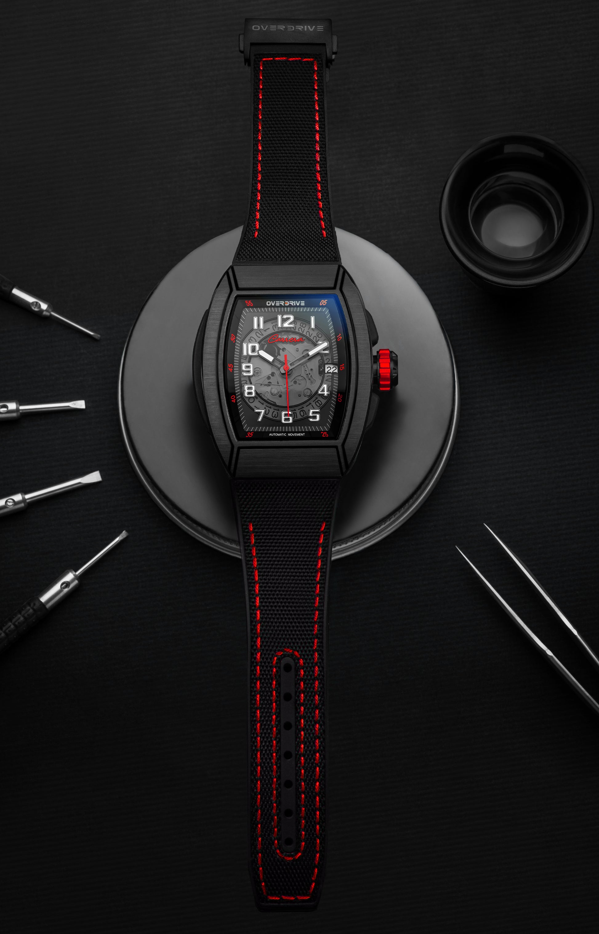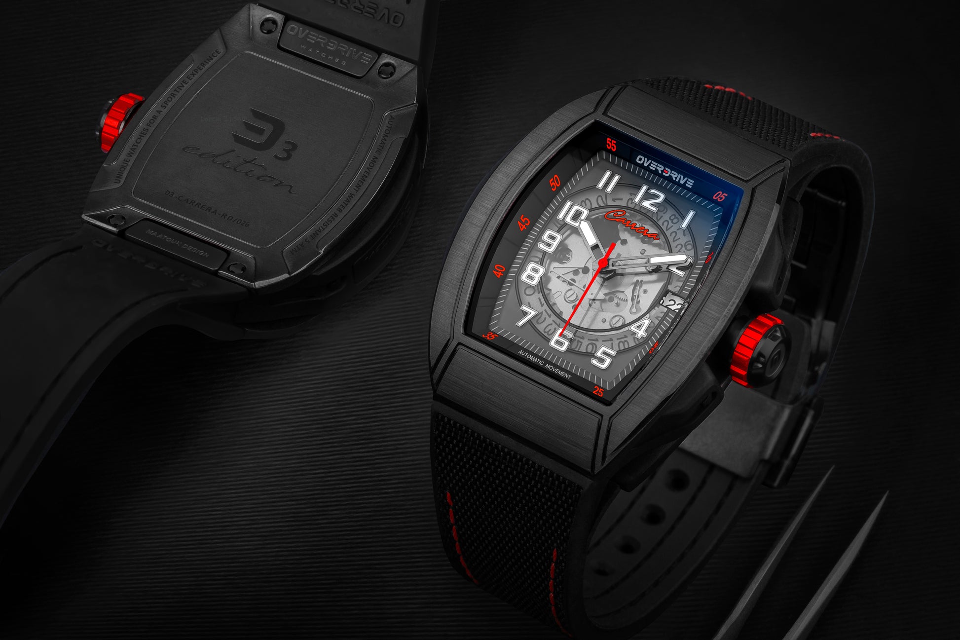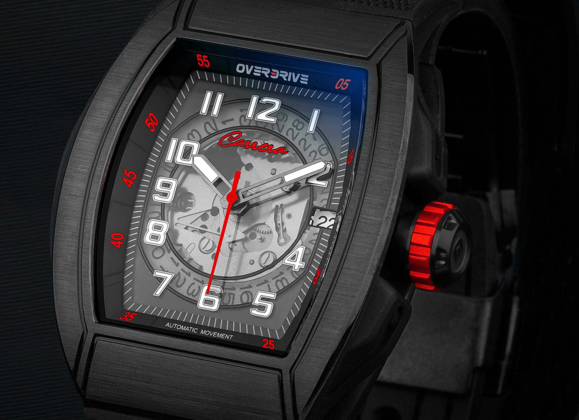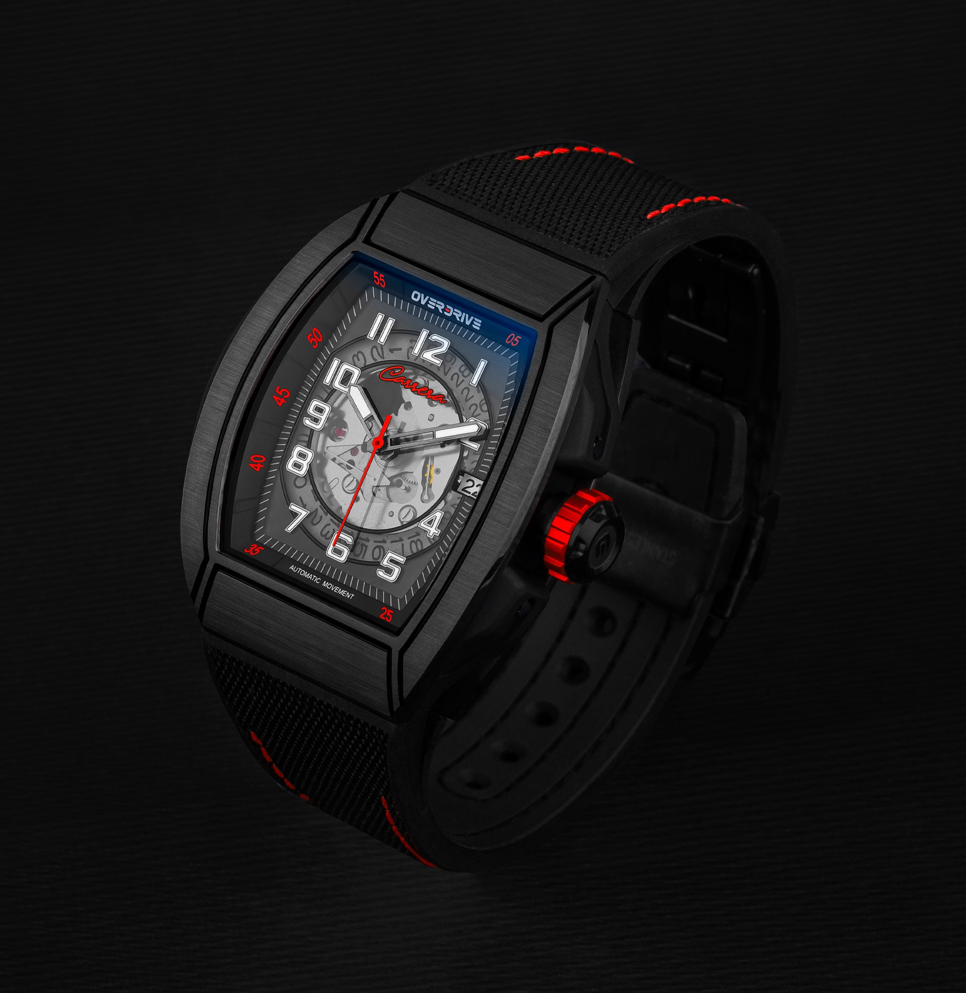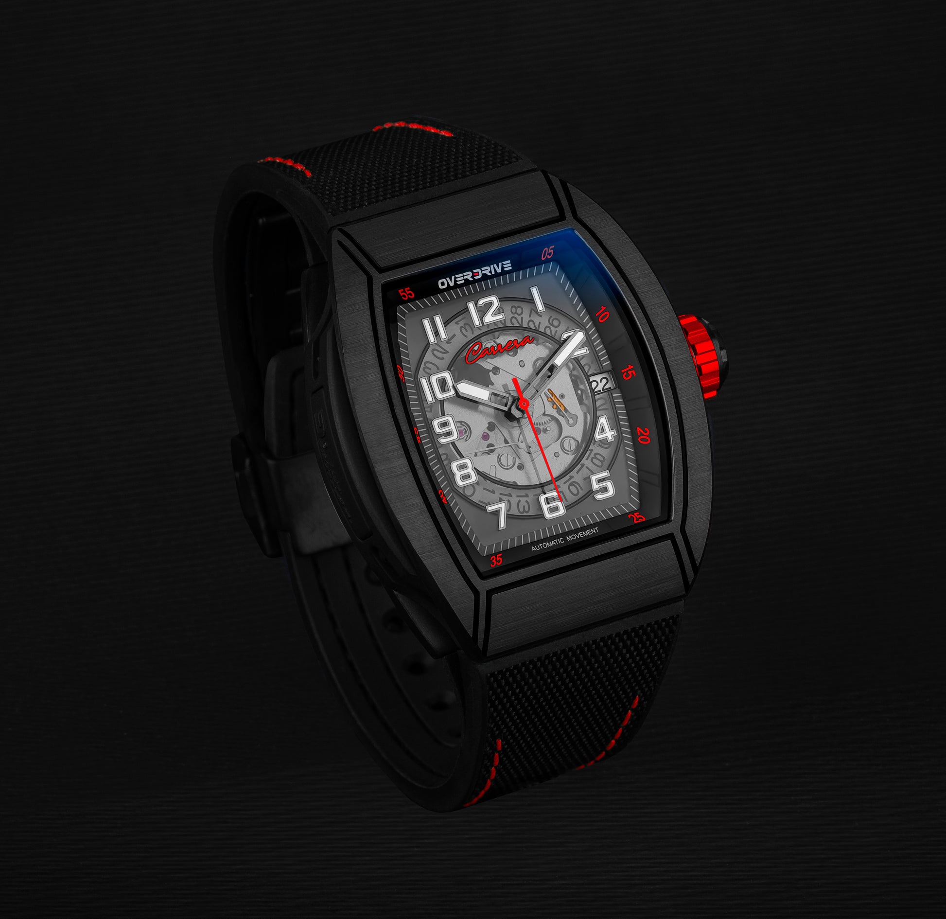 The Red Carrera Overdrive is inspired by the iconic red race cars that have dominated motorsports history. A statement piece for those who crave the thrill of the race.