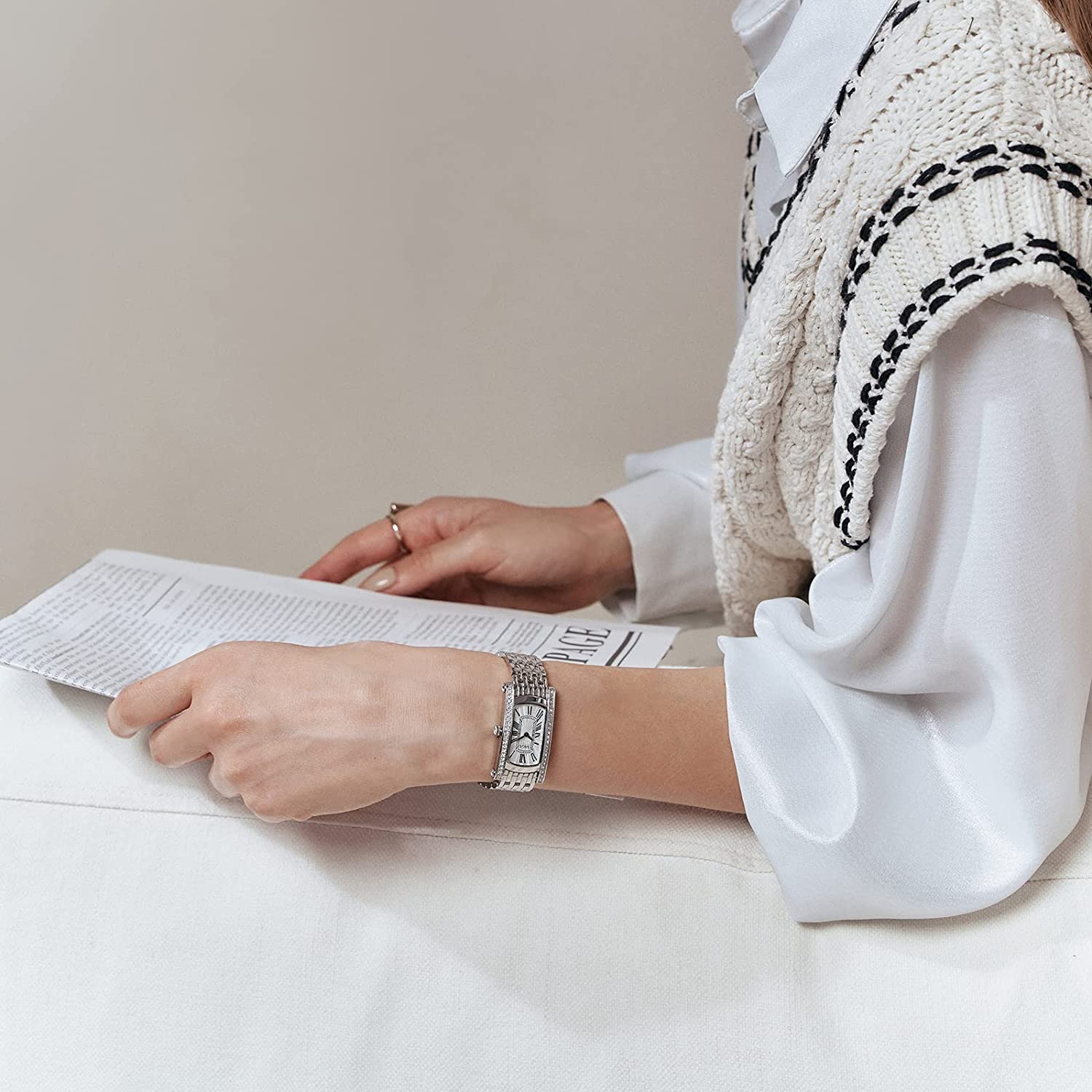 - Unique design:This womens watch with crystals around the edges, a silvered finish and a white dial with Roman numerals is simple and generous, adding elegance and creating a vintage, stylish and versatile style.