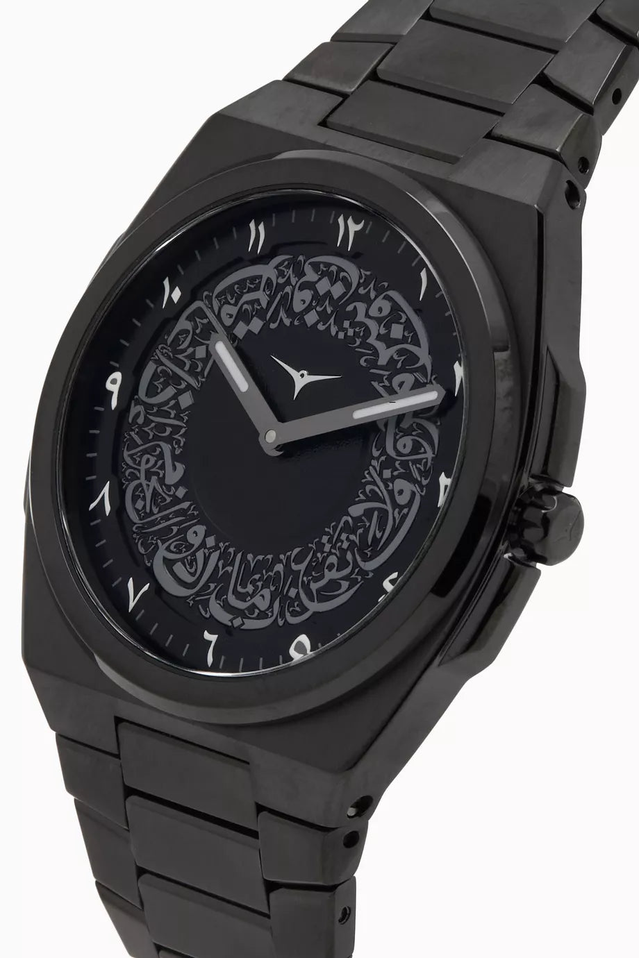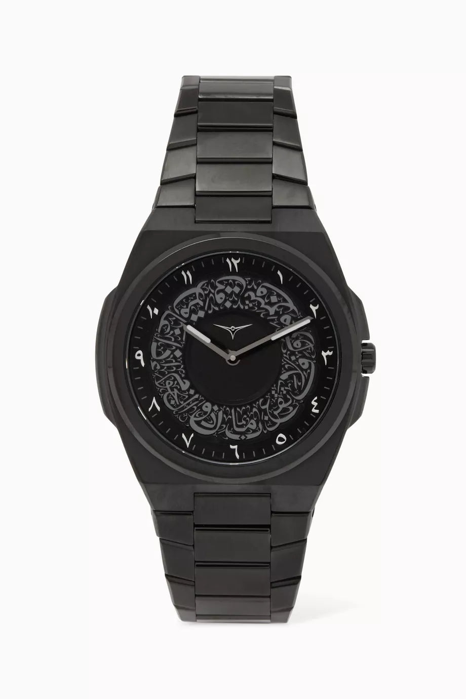 • Set beneath scratch-resistant sapphire crystal, the dial is inlaid with Arabic calligraphy and glow in the dark index and hands